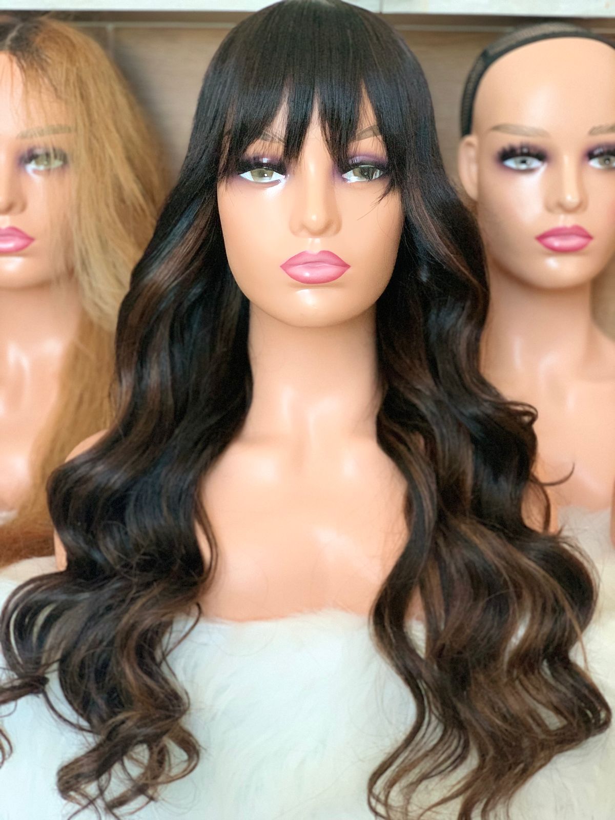 Minimal effort, maximum impact. This sleek 24-inch Virgin Human Hair Wavy Fringe Wig delivers a polished, sophisticated look that never goes out of style.